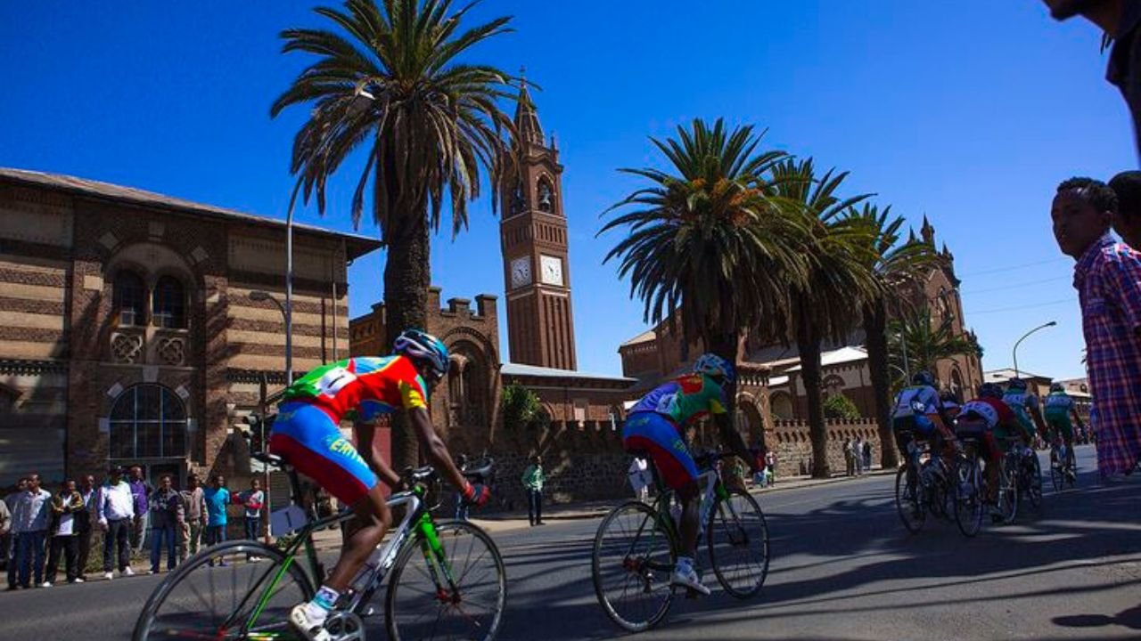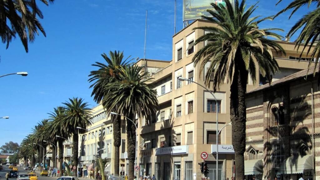 Asmara sits at the edge of an escarpment on the Eritrean highland plateau, more than two thousand metres above the Red Sea below. At that altitude, the air is thinner, and the sky is a deeper blue than in most capital cities. The light, particularly in the late afternoon, falls across concrete, palm fronds, and church bell towers in a way that slows the body down before the mind catches up.